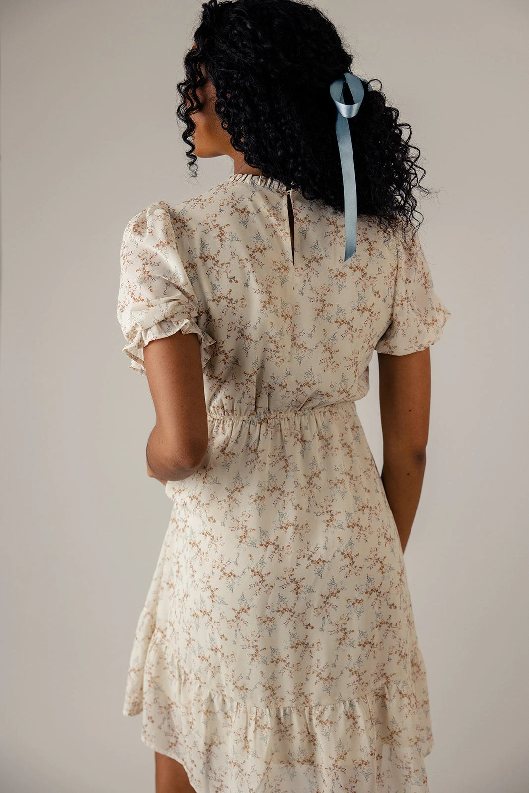 This dress boasts graceful puff sleeves and a chic ruffled mock neck, offering a touch of sophistication to your look. With its charming floral pattern and feminine ruffle hem, it exudes timeless beauty and grace. Perfect for any occasion, from brunch dates to garden parties, this knee-length dress is sure to turn heads and make you feel fabulous.