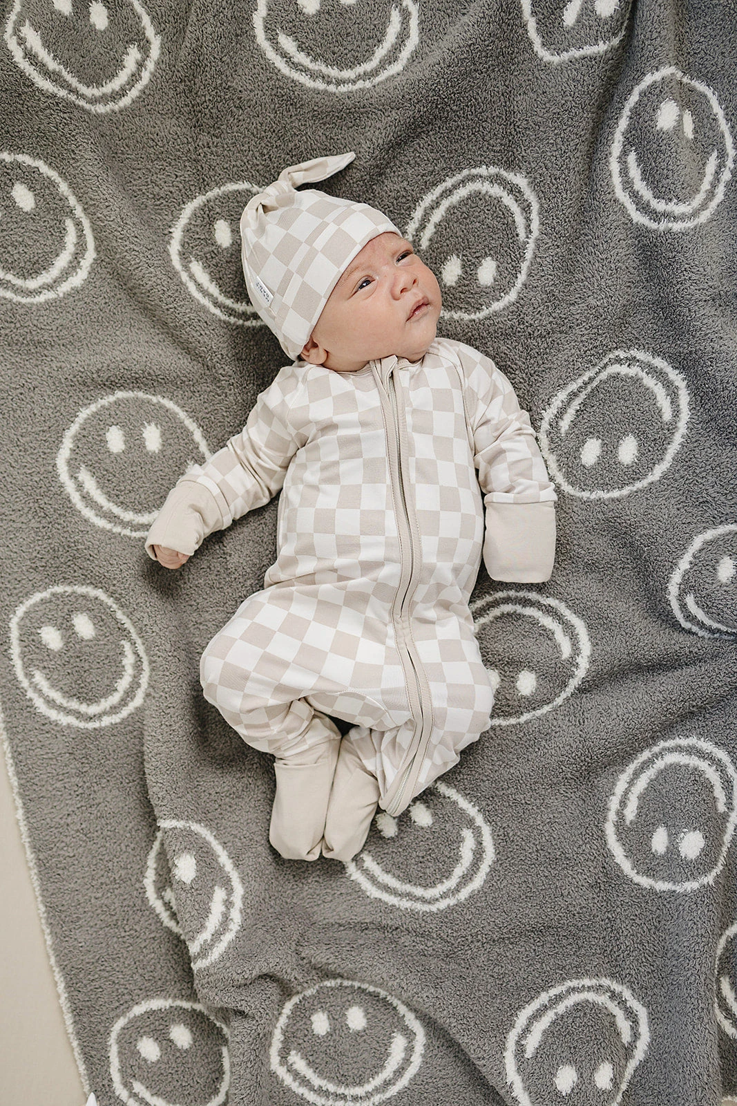 The Taupe Checkered Bamboo Zipper pajamas are a must-have for your baby’s wardrobe. Made from soft bamboo fabric, these gender-neutral footed pajamas feature a convenient double zipper design that allows for easy diaper changes. The double zipper zips from the top and bottom, making nighttime changes a breeze. The added foot cuffs not only keep your baby cozy but also allow for extended wear as your child grows. These pajamas combine functionality with style, making them an essential item for any parent.