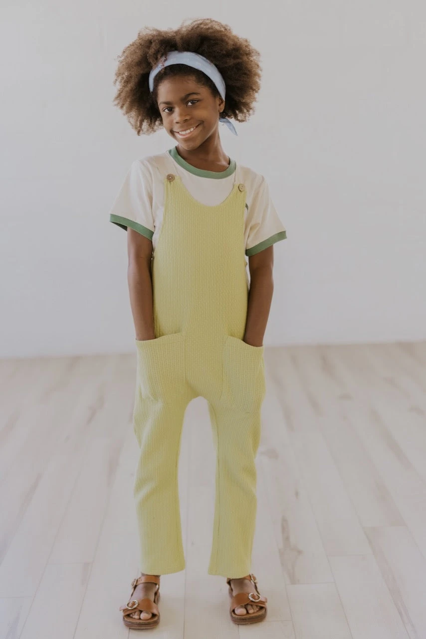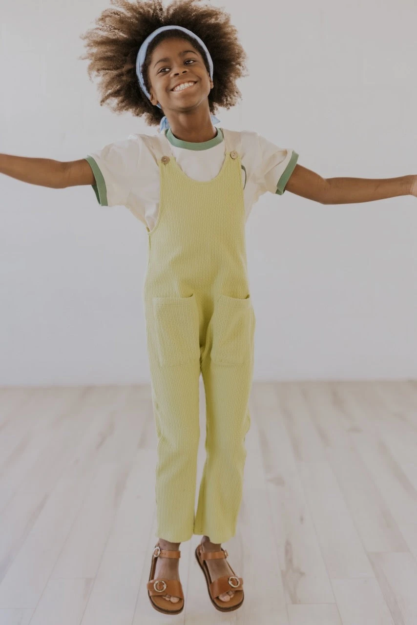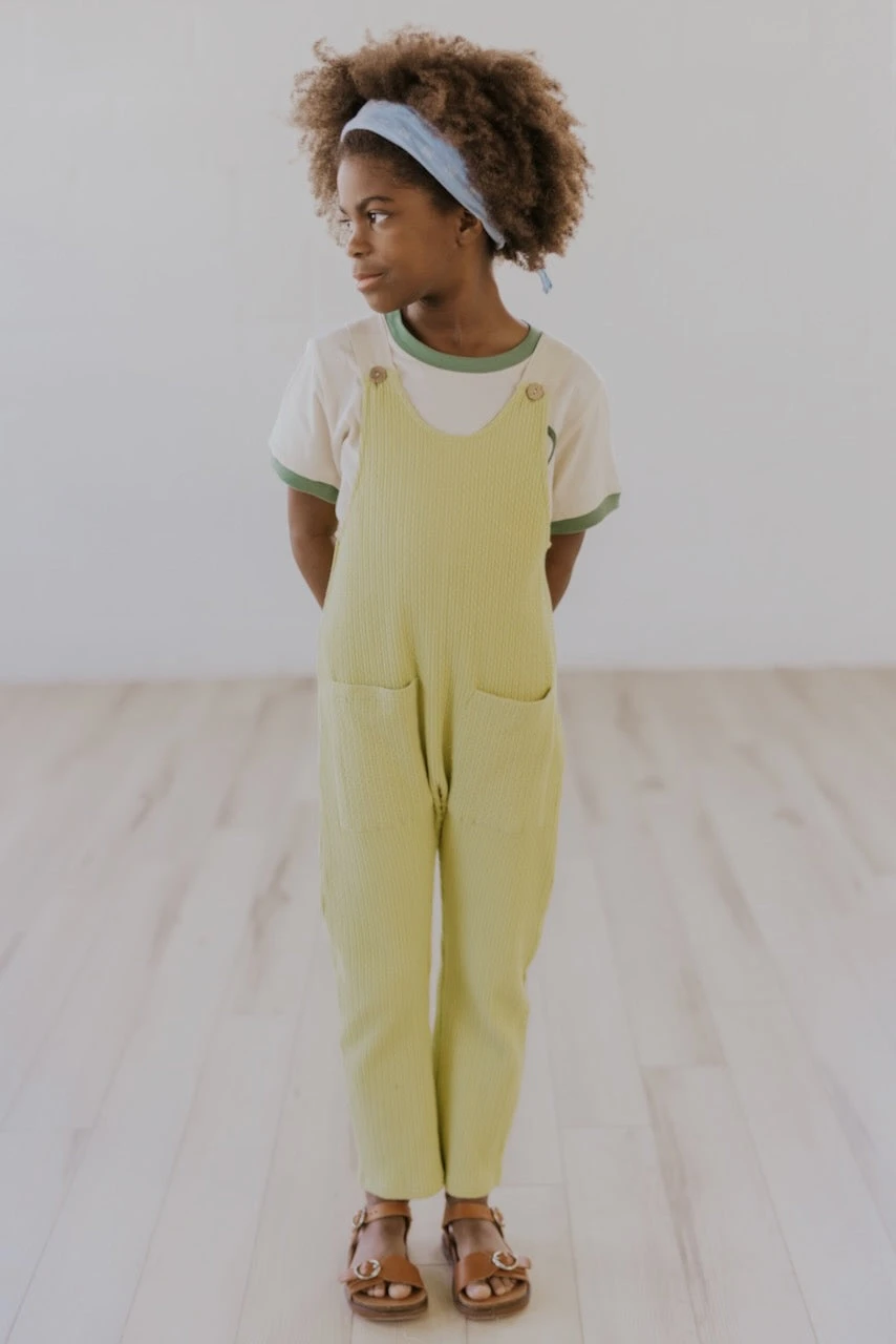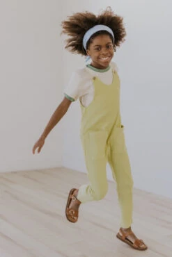 Cheese and jam; these overalls are just too cute. Imagine pairing this with a graphic pullover or solid tee and sending your child on their way toward adventure. They can bring home treasures in the front pockets and be blissfully comfortable in the linen material. They’ll look and feel like a million dollar bucks 🙂