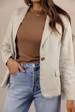 The Longbourn Blazer features a single button closure for a sleek look. Wear in many different ways for looks that are timeless and trendy!