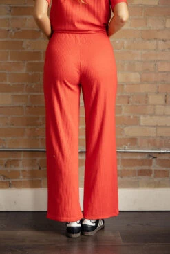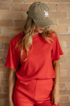 Introducing The Scarlett Ribbed Set – your new favorite go-to for effortless style and comfort! This set features a cozy ribbed tee and matching wide-leg pants in a vibrant red hue. The tee offers a relaxed fit with a classic crew neckline, perfect for everyday wear. Paired with the coordinating wide-leg pants, this set exudes casual chic vibes that are perfect for lounging at home or running errands in style.