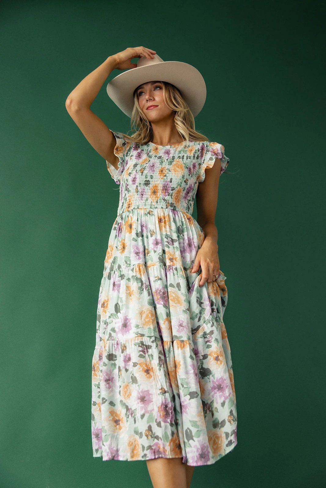 Step into enchanting elegance with the Through the Garden Gate Smocked Dress. This captivating dress beckons with its bold floral pattern, reminiscent of a lush garden in full bloom. Perfect for strolling through sunlit gardens or attending outdoor soirées, this dress invites you to step through the garden gate and into a world of timeless beauty and grace.