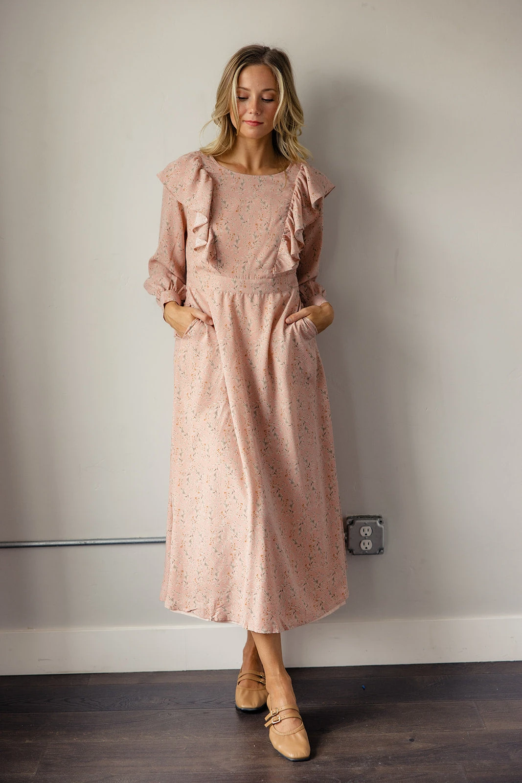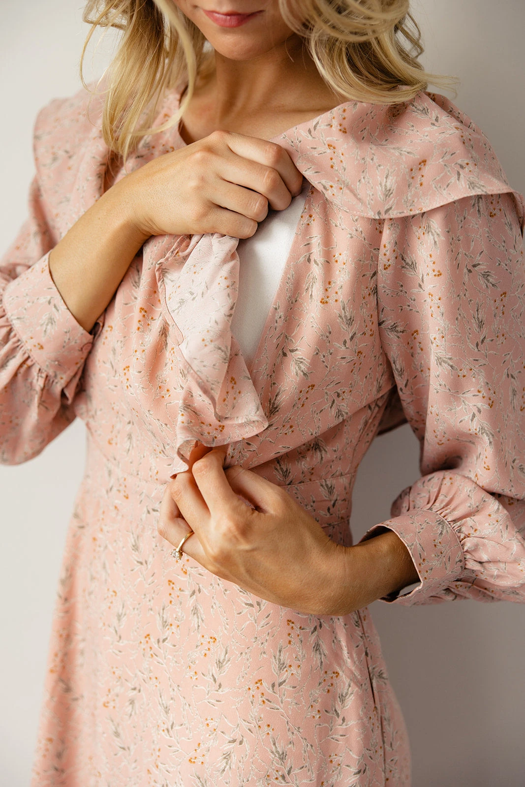 I’m imagining you in this dress out on the town or with your significant other on a date. Makes me super giddy honestly. This dress was designed with the perfect a-line silhouette, ruffles that go from front to back, and pockets (of course). Also features hidden zippers so you can nurse + pump while looking absolutely stunning. It’s dramatic in the best way possible. Just like us!