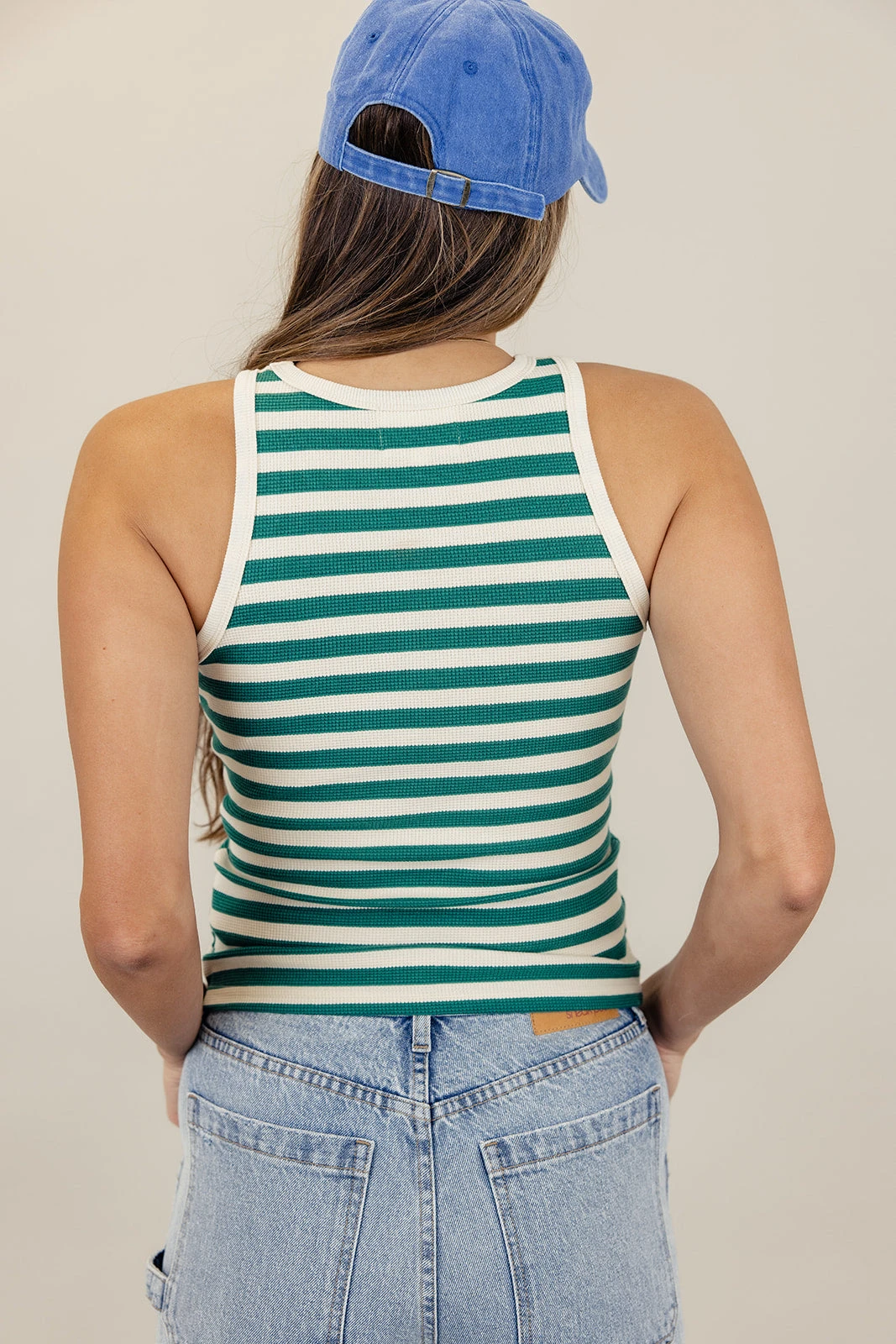 Picture this: sunshine, breeze, and you rocking this tank. With the playful stripes and fitted look, it’s perfect for pairing with your favorite shorts or jeans for a laid-back look. Grab one and let’s soak up the sun together! 🌞