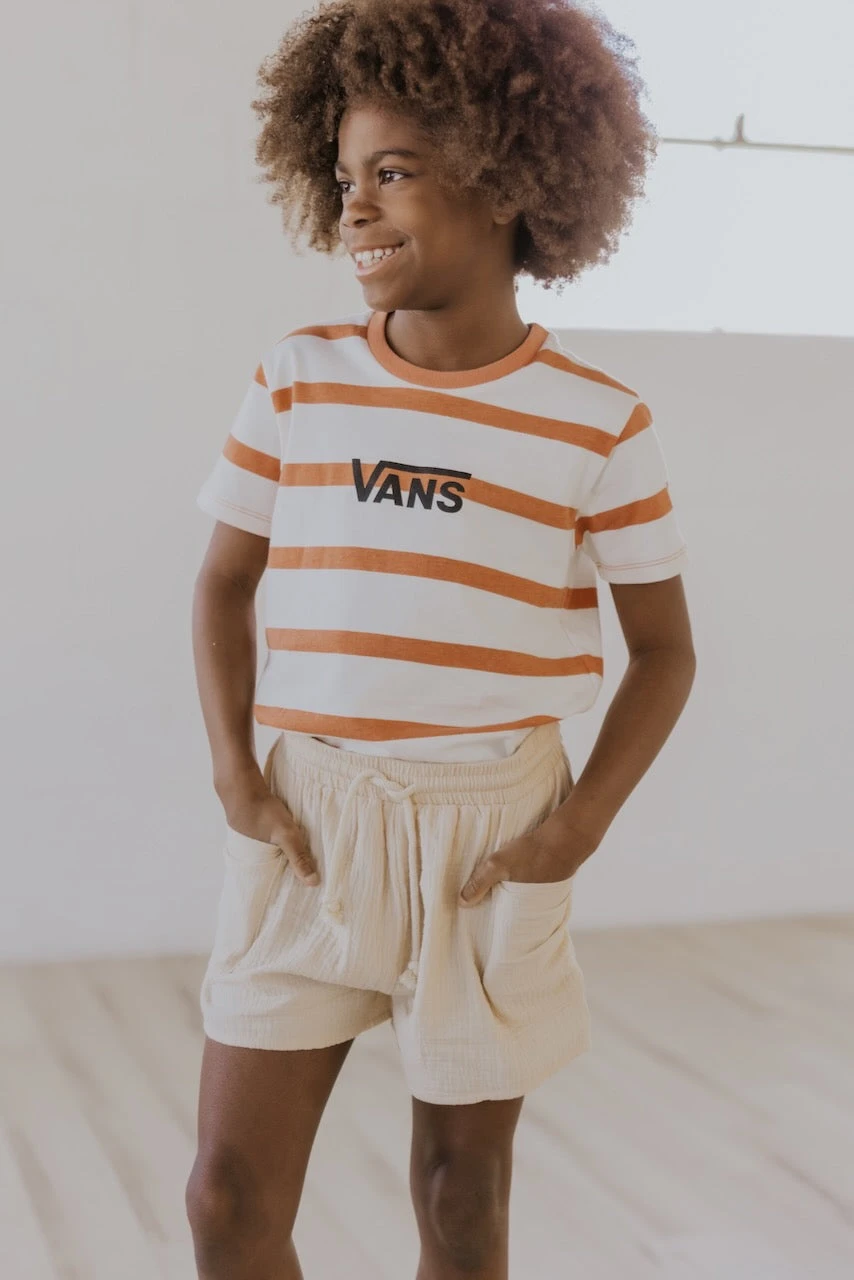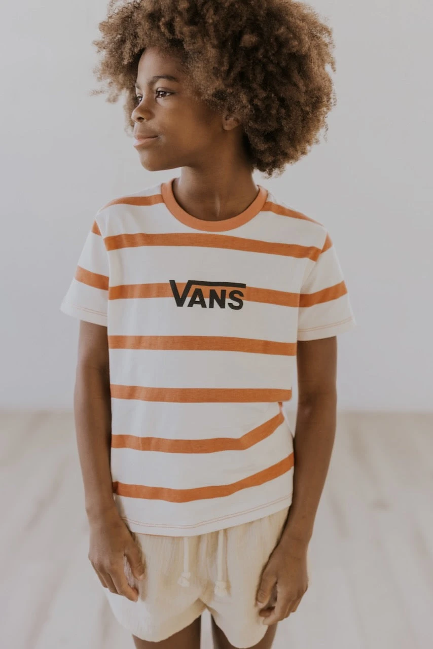 For school days and summer days, vans will always be there. We especially are big fans of simple striped tees. Perfectly paired with denim, shorts, + a pair of old-school vans of course. Make sure to tag us when your little one sports this fabulous tee.