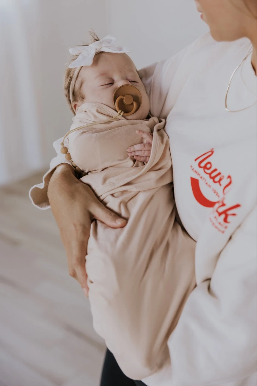 This baby bundle includes a newborn gown with working buttons, a swaddle, and a cute little hat. The perfect set to add to your hospital bag! This bundle comes in three gorgeous shades to fit any aesthetic. The gown included features a bottom you can knot to keep their tiny legs covered + fold-over cuffs to keep baby from scratching themselves. The gown and hat make the perfect combination for those newborn pictures you’re dying to snap. So simple + comfy!